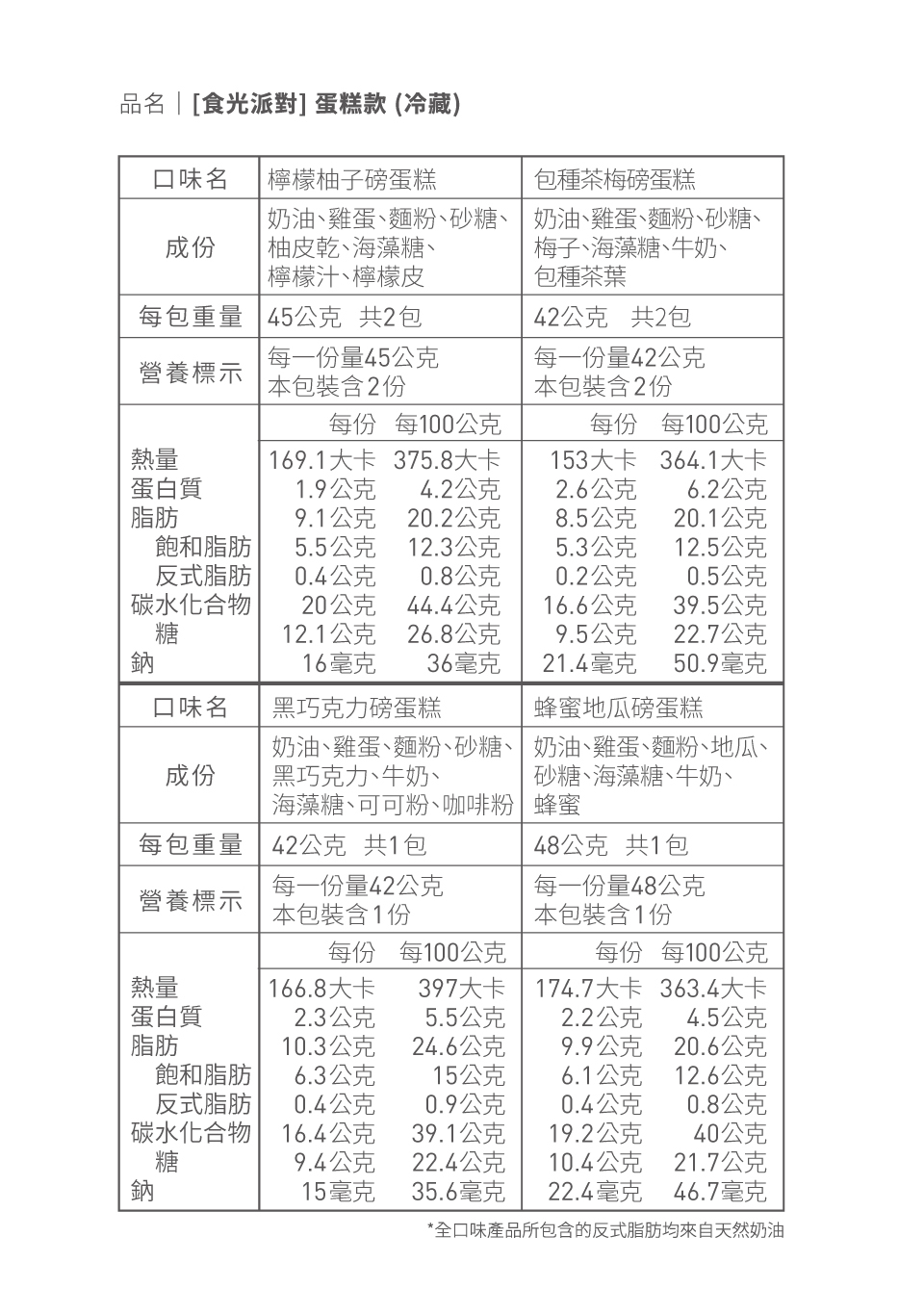 過敏原 |品項皆含麩質穀物(麵粉)、乳製品及雞蛋,黑巧克力含大豆。