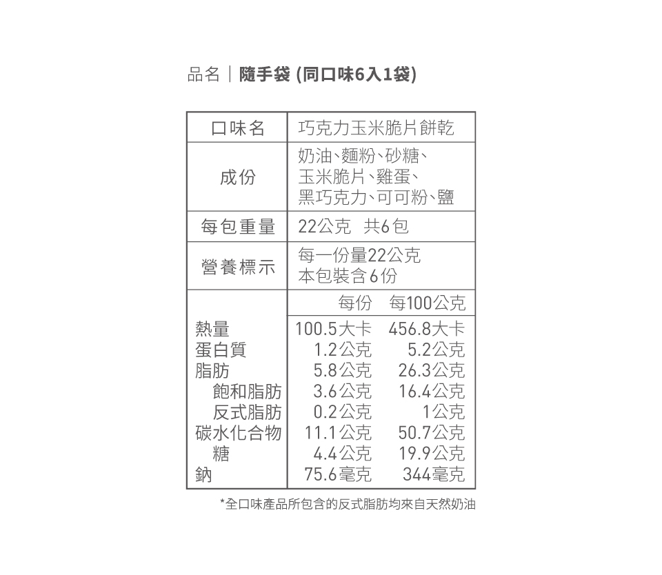 內 容 | 巧克力玉米脆片餅乾 (12片)