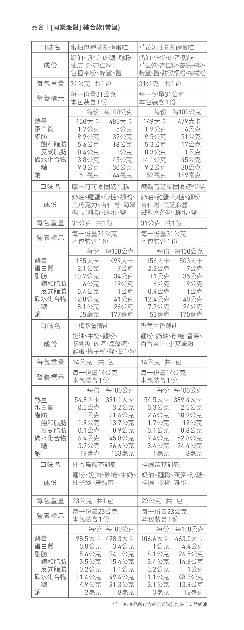 過敏原 | 所有口味皆含麩質穀物、牛奶製品及雞蛋 (柚香烏龍茶不含雞蛋) 。蜜柚包種、草莓奶油、摩卡可可風味、鐵觀音芝麻含堅果,摩卡可可風味含大豆,鐵觀音芝麻含芝麻。